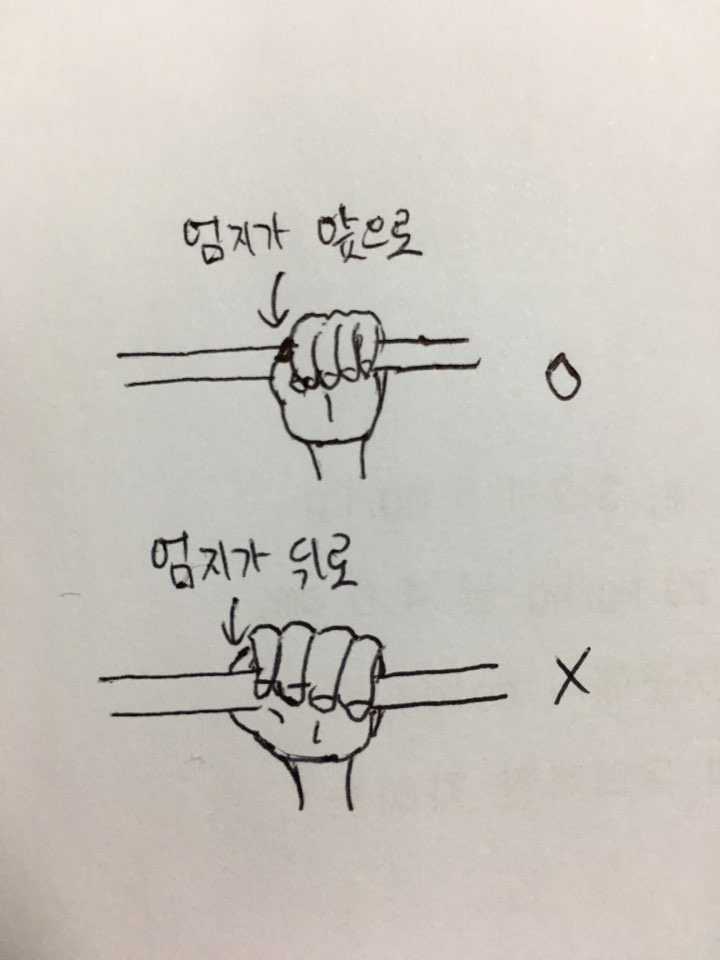 이때 바를 엄지와 검지 사이에 놓는게 안전하다